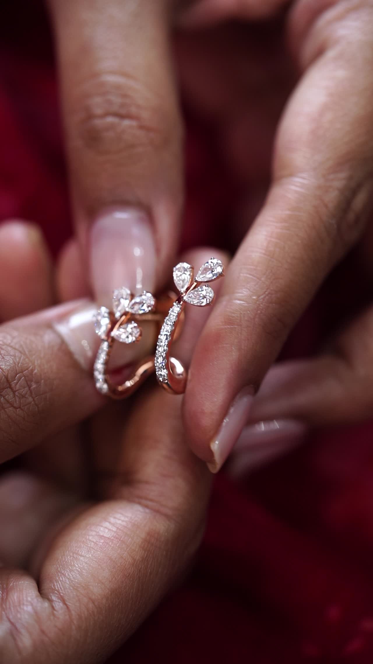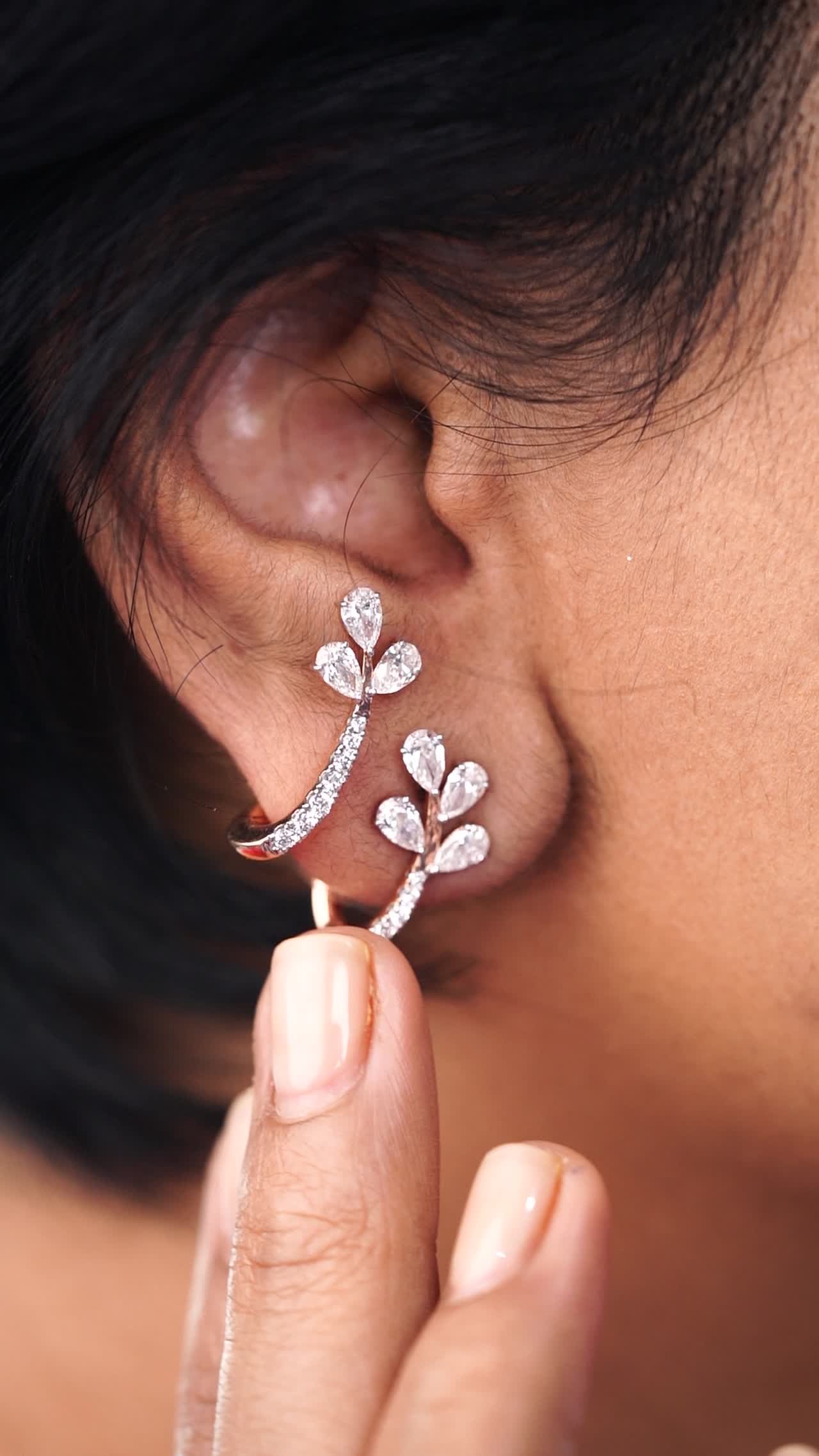 Diamond-studded leaf cuff earrings that wrap around the ear with sparkling floral motifs.
