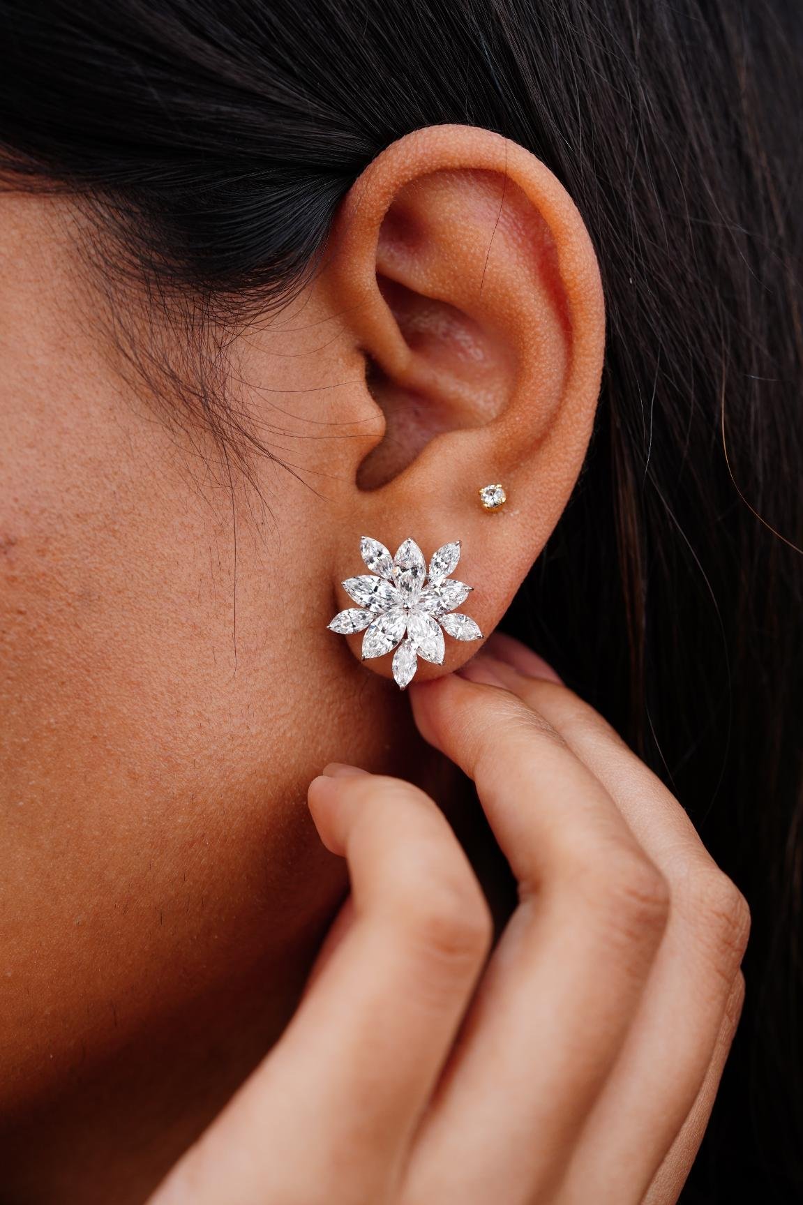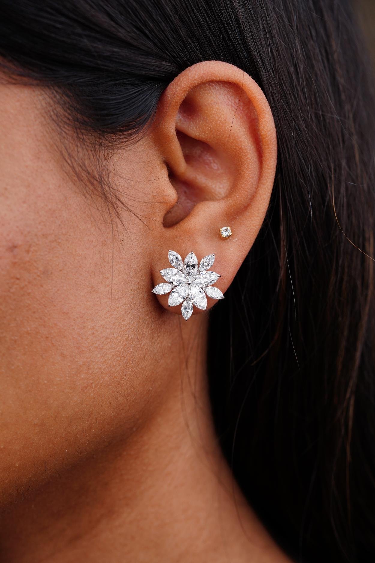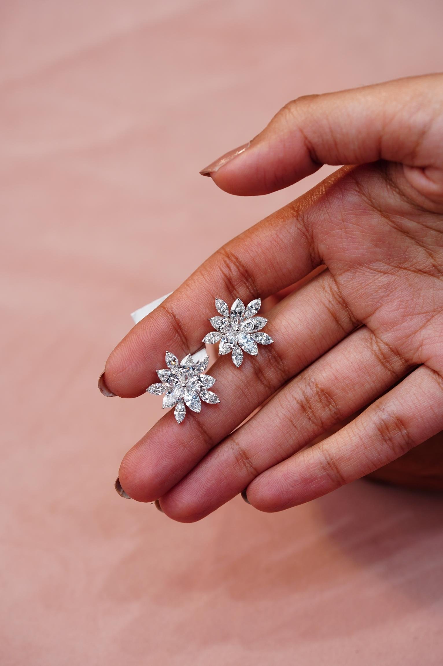 Stunning flower-stud earrings set with marquise-cut diamond-like gems that sparkle like a blossom.